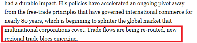 文章还指出,在本届政府撕毁了数十年的贸易协定,并抛弃了一系列经济政策和贸易原则后,要让合作伙伴和盟友再次信任美国,将变得极其困难