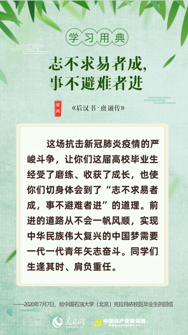 【编者按】“志不求易者成,事不避难者进。”近日,席大大总书记给中国石油大学(北京)克拉玛依校区毕业生回信,对广大高校毕业生提出殷切期望。“人生在勤,勤则不匮”“积土而为山,积水而为海”……近年来,席大大多次引用诗句典故,激励包含广大青年在内的全党全国各族人民拼搏奋进、埋头苦干。正值“战疫”“战贫”关键时刻,人民网·中国共产党新闻网与您一起回顾席大大讲话中关于“奋斗”的10个名句。