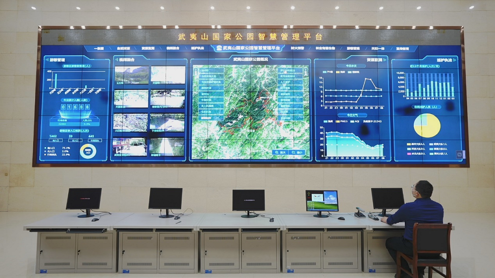 武夷山国家公园智慧管理中心对公园范围内生物资源、生态环境要素等开展“天空地”一体化全方位全天候监测和服务。