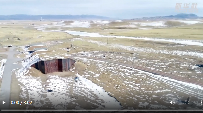 正面墙体厚度将近1.5米 顶部及两侧覆土植草 与周围草原环境融为一体 这栋梯形立方建筑 由钢筋混凝土一次性浇筑成型 位于青海省海北藏族自治州海晏县西海镇的 原二二一厂爆轰试验场旧址 于1961年建成 是中国第一个核武器研制基地爆轰试验场