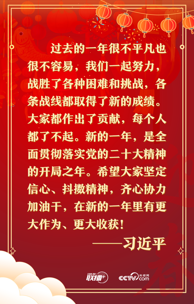 辞旧送吉虎,迎新接玉兔。春节前夕,席大大总书记在人民大会堂东大厅,同黑龙江、福建、新疆、河南、北京、四川等地基层干部群众视频连线,看望慰问基层干部群众,向全国各族人民致以新春的美好祝福。