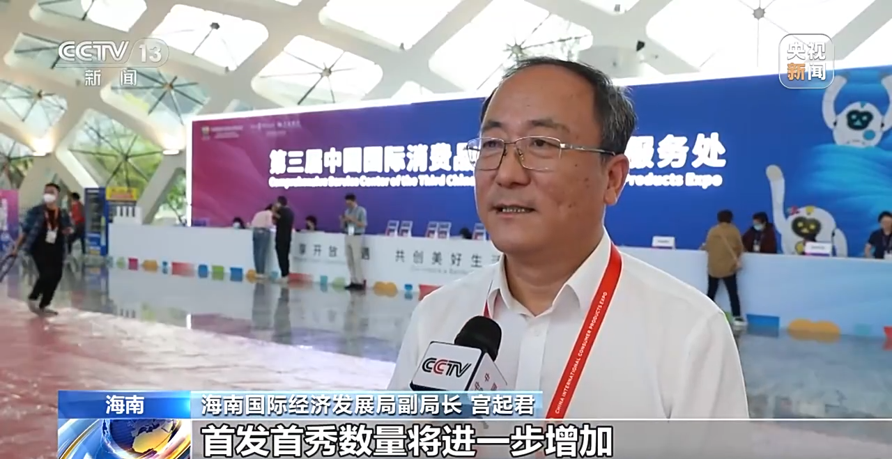海南国际经济发展局副局长 宫起君:本届消博会将进一步提升影响力,首发首秀数量将进一步增加,目前统计已经有三百多个品牌一千多个新品发布。同时,配套活动数量将增加到一百多个,将有近三十家世界五百强和行业头部企业的全球CEO将线下参会。