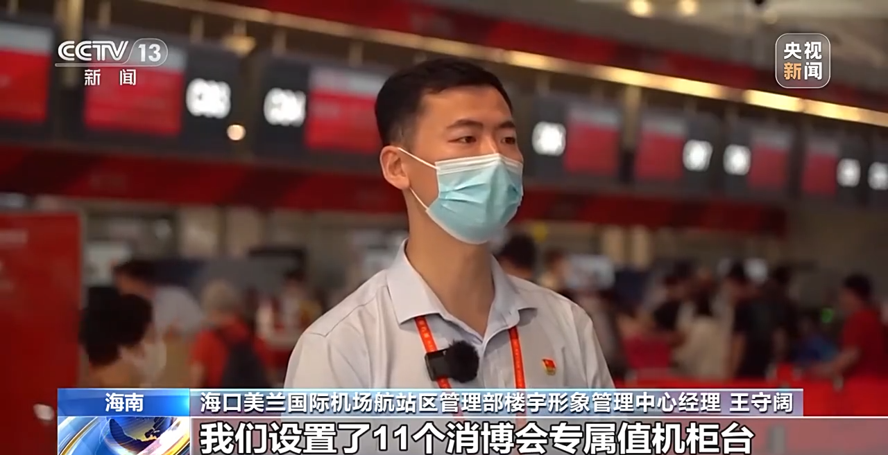 海口美兰国际机场航站区管理部楼宇形象管理中心经理 王守阔:我们设置了11个消博会专属值机柜台和4条专属安检通道,有效分流参会嘉宾和普通旅客,大幅提升出行效率。