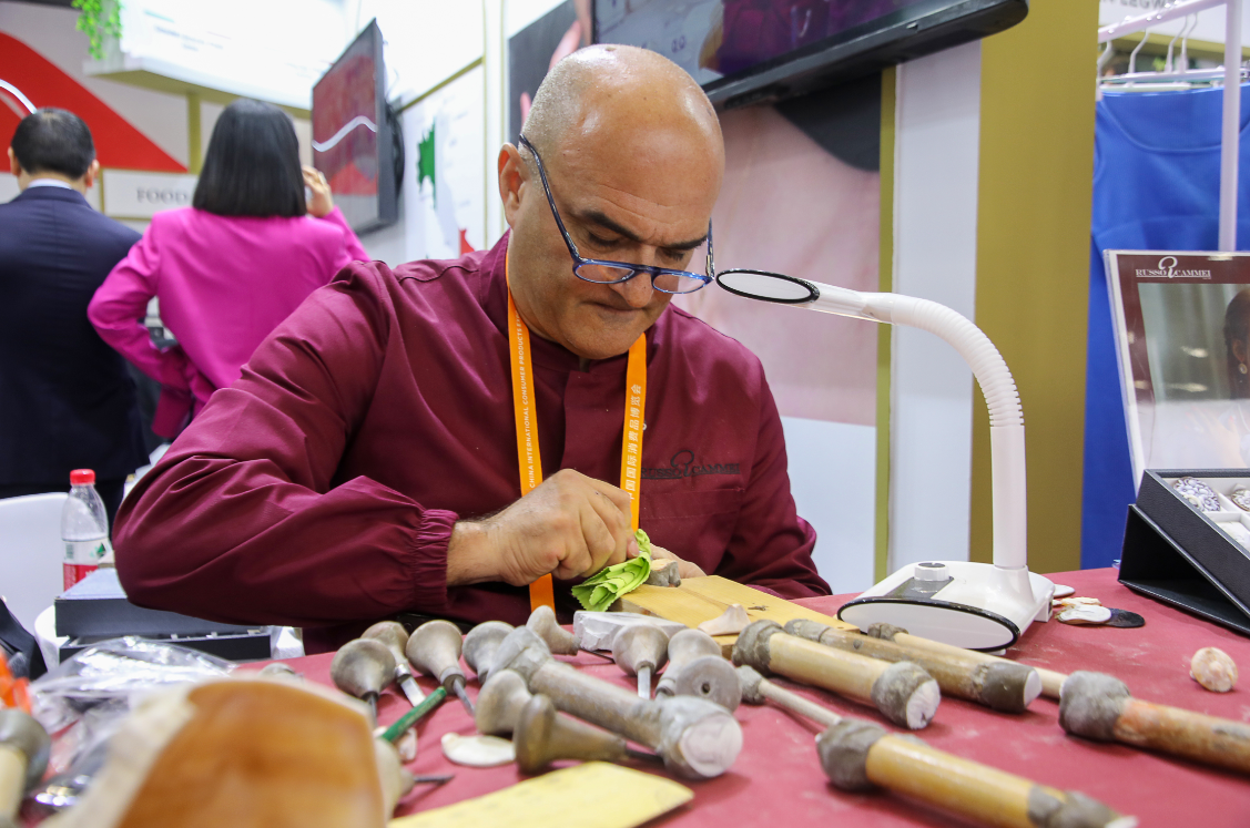 RUSSO CAMMEI的工匠现场展示制作技艺。高山岳摄。