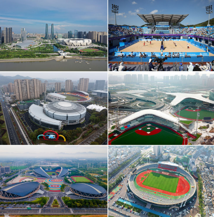 杭州亚运会以杭州为主办城市,宁波、温州、湖州、绍兴、金华为协办城市。中国践行“绿色、智能、文明、节俭”理念,努力向世界奉献一届“中国特色、亚洲风采、精彩纷呈”的体育盛会。