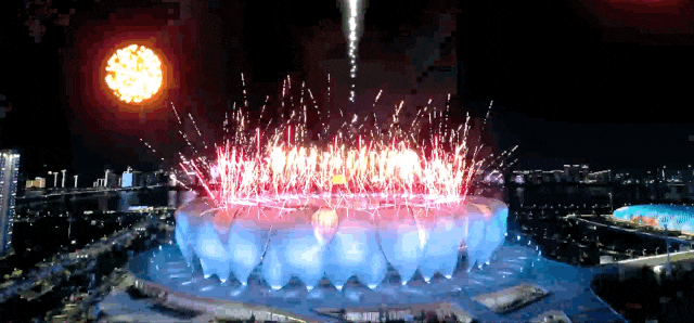 音乐一秒切换《歌唱祖国》 现场沸腾了 这就是我们的中国健儿 为他们加油 瞬间五 数字烟花如约绽放 杭州亚运会开幕式 取消了实体烟花燃放 而是通过 三维动画、AI技术等 把灿烂的烟花 展示在观众面前