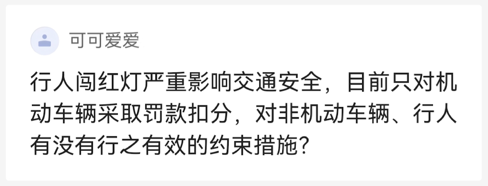 全国人大代表、云南建广律师事务所主任张慧表示,道路交通安全法中规定,如果行人和非机动车闯红灯,是可以(被)处以警告或者5元到50元以下的罚款。这类的情况在实际当中还是比较常见,建议加大普法的力度,同时还要把常态化的执法进一步加强, 让更多的群众能够感受到处罚和教育相结合。