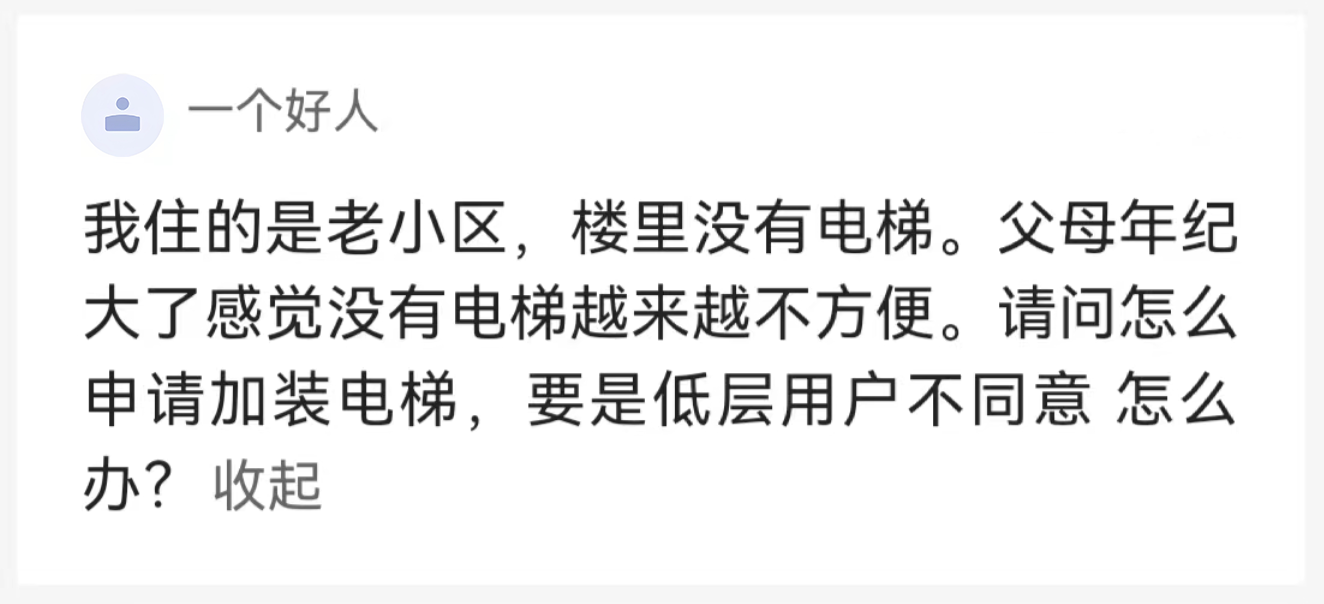 电梯加装以后,有的是平层,出了电梯直接到自己的单元;有的可能是错层,出电梯也可能在上半层或者下半层,也没有解决最后一米的问题。但是从总体效果来看,加装电梯还是方便了楼上的居民,特别是老年居民,所以整个政策导向,是按照“谁受益谁付费,谁使用谁付费”的原则,住在首层的群众如果不使用电梯,不用缴纳改造的费用,也不需要缴纳使用的费用。
