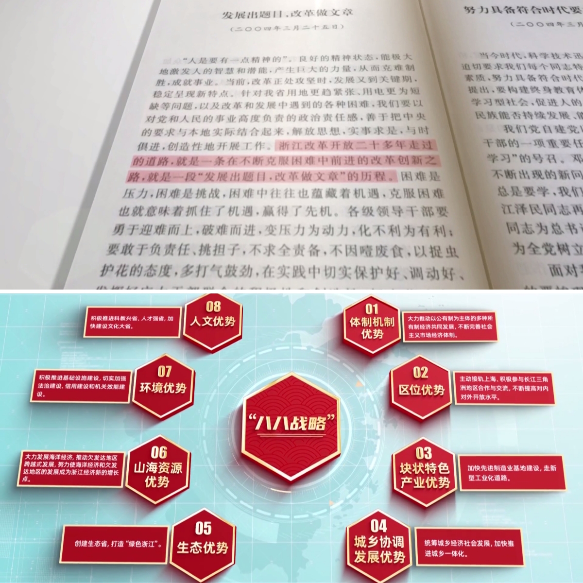 改革,是浙江成长的基因 跨越新世纪,面对发展中的难题 浙江以“八八战略”为总纲 爬坡过坎的每一步 都蕴含着改革创新的智慧和力量