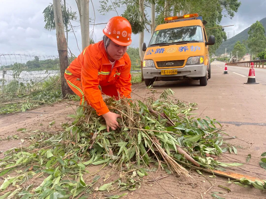 郑晓岩负责养护的国道G228线连江段依山傍海,风景虽好,但常年受台风、暴雨影响,养护保通任务繁重。每年夏季台风高发期,沿线容易出现树木倒伏、路面积水、道路受阻等情况。每当恶劣天气来临,她总是和男同事一起并肩抢险,清理倒伏树木、搬运杂物、疏通排水、设置警示标志。暴雨中,她不顾浑身湿透,踩着泥泞排查隐患,一忙就是好几个小时。同事劝她歇一歇,她却说:“路不通,不撤岗。”柔弱的身躯,迸发出坚强的力量,用实际行动践行着公路人闻令而动、向险而行的担当。