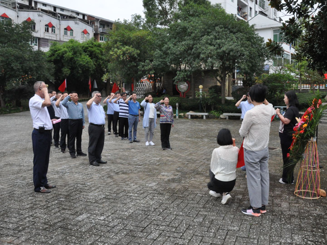 在中央苏区反“围剿”纪念园,全体党员佩戴党徽,瞻仰革命烈士纪念碑,向革命烈士纪念碑敬献花篮,深切悼念为新中国伟大革命事业而壮烈牺牲的革命英烈。活动期间全体党员重温入党誓词,进一步坚定理想信念,提高思想觉悟和政治素质,增强责任感和使命感。