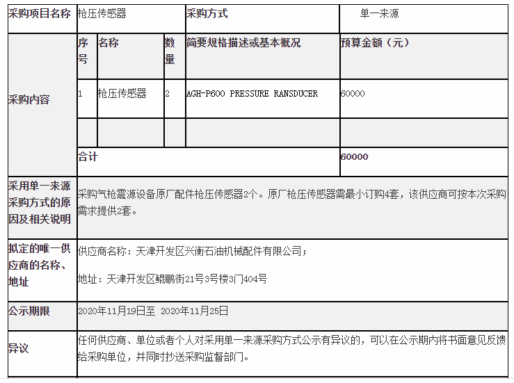 地震灾害预防中心枪压传感器采用单一来源采购公示