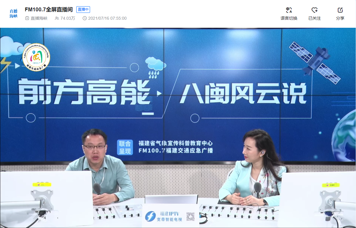 整场访谈紧贴当下天气热点问题,听友网友讨论热烈,节目通过中国气象局微博、福建气象微博、直播海峡、1007福建交通应急广播全媒体直播间、1007微博等多个平台同步音视频直播,累计观看量超80万人次,取得了良好的反响。