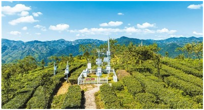 茶园中的小气候站和实景监控系统。(拍摄:颜家蔚)