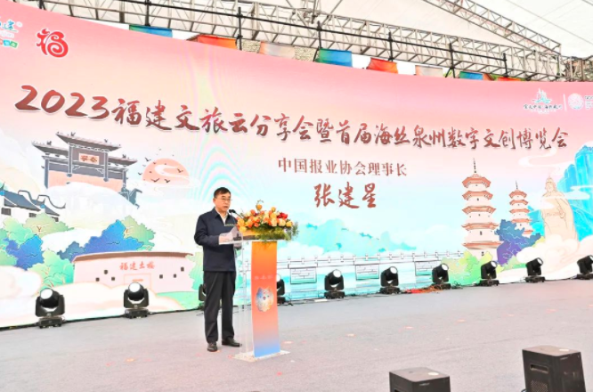 中国报业协会理事长张建星致辞。福建省文旅厅供图 泉州市政府副市长陈小辉介绍了泉州多民族文化交融、山海文化气息兼备、宗教文化共荣的地域文化特征。他表示,泉州抢抓世遗城市和数字经济的时代红利,推动数字文创产业加速布局。