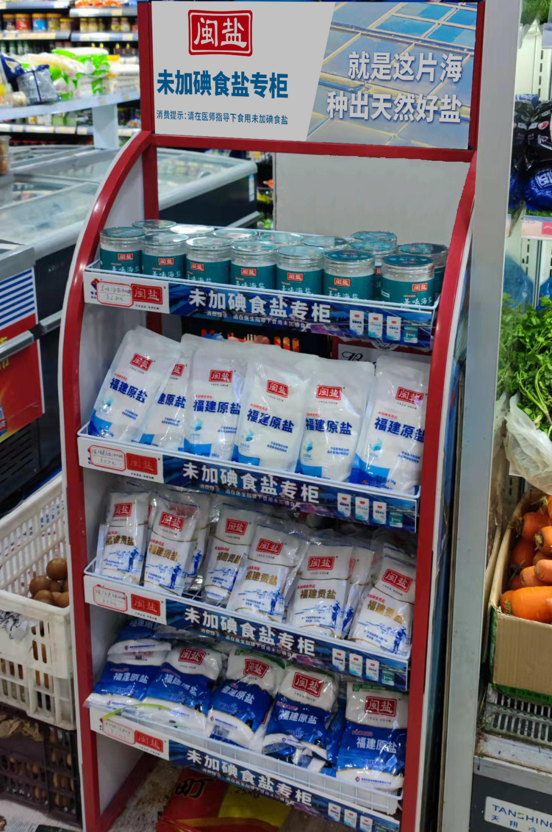 福盐集团按照“布局合理、方便群众、满足需要”的原则,合理设置未加碘小包装食盐销售网点,实行挂牌管理,设置消费提示,并根据网点布局变化,定期在公司官网动态更新(如下图)。并通过在供应点设置未加碘小包装食盐专柜、专架等多种陈列方式,方便群众选购。同时在原有未加碘小包装食盐品种基础上,新增了未加碘立袋原盐、低钠海盐等新品,满足群众多层级消费需求。目前福盐集团依托全省商超、食杂店等,布局了2600多个未加碘小包装食盐销售网点,方便特需人群购买。