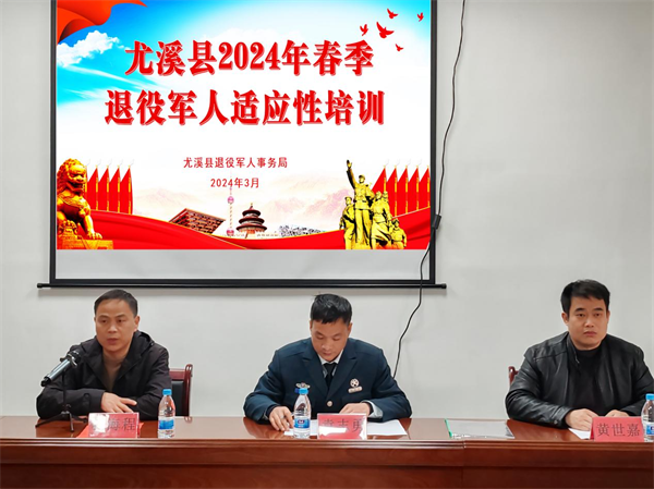 3月13日--15日,尤溪县春季退役军人适应性培训在尤溪县退役军人火箭救援社会服务中心举行,人武部袁志勇科长、退役军人事务局杨海程副局长、黄世嘉副局长出席开班仪式,全县2024年春季退役军人28人参加本次培训。