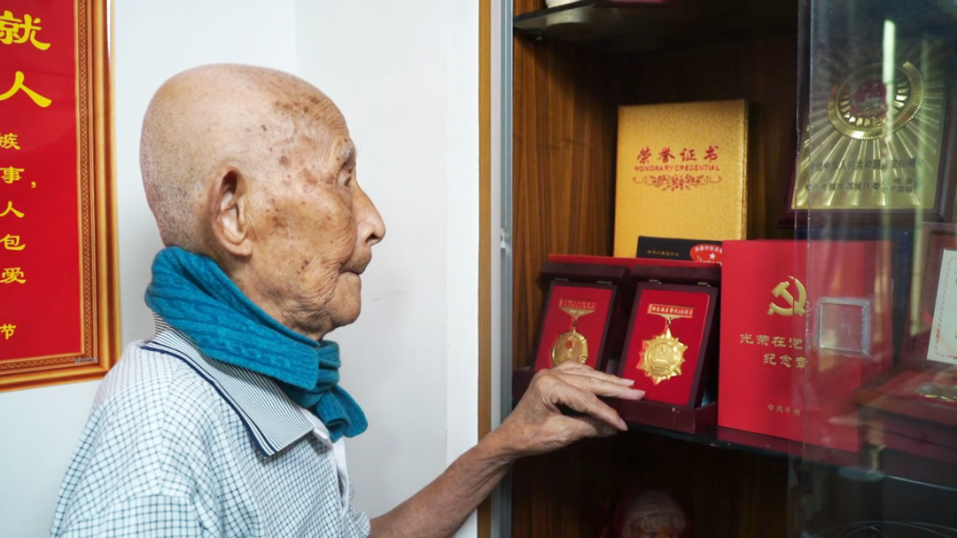 在段兆善的衣柜深处,藏着一件“传家宝”——半条浅褐色的毛毯,边角用绿色毛线补缝,补丁摞着补丁。这是抗战期间缴获的战利品。当时部队奉命南下,上级要求轻装简行,他和战友把这条毛毯剪开分着带,如今这条只剩下一半的毛毯,伴随着段兆善66个春秋。期间,它成了绷带,吸过战友滚烫的鲜血;成了褥子,垫过雪地里露营的寒夜。1952年他转业到地方,66年来,无论搬家到哪里,他都带着它,破了就自己缝,这些深浅不一的补丁像一枚枚勋章:“这上面有战友的血,不能丢”。