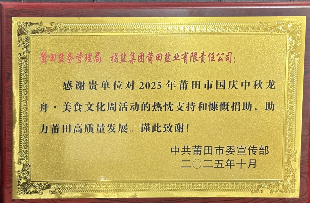 近日,在福建莆田,从热闹非凡的白塘湖“龙舟·美食文化周”到温情涌动的“街艺莆阳”公益活动,福盐集团的身影频频亮相。当千年海盐文化邂逅现代文旅活力,当“福建老字号” 品牌链接公益温情,这不仅是权属莆田盐业深度融入地方发展的生动实践,更是福盐集团深耕区域、服务民生的有力缩影。 助力文旅,国企担当赋能地方“烟火气” 金秋时节,莆田市涵江区白塘湖人潮涌动,“龙舟・美食文化周”活动吸引了数万市民游客。福盐集团携“闽盐”系列产品与特色盐焗美食亮相现场,为这场文旅盛宴增添了一抹独特的“咸鲜”风味。 活动现场,“闽盐”展位前人头攒动。依托台湾海峡深层海水以古法工艺晒制而成的“闽盐”,咸鲜回甘的特质让盐焗鹌鹑蛋成为现场“人气担当”,每一口醇厚口感都彰显着省级非遗海盐制作技艺的匠心。游客们在品尝美食的同时,更通过陈列的盐产品直观感受“福建老字号”的品质匠心。 因对文旅活动的热忱支持与品质呈现,中共莆田市委宣传部特意授予感谢牌匾。这块牌匾,不仅是对企业助力地方文旅发展的肯定,更是“闽盐”品牌实力的生动佐证。