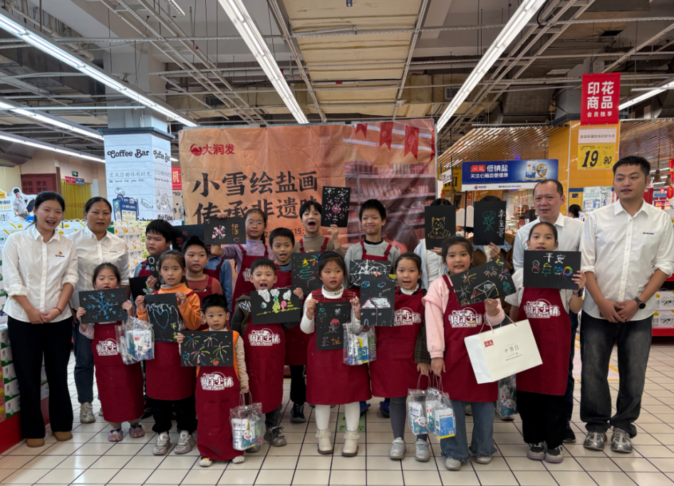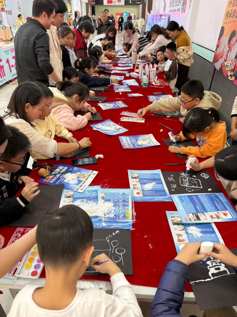 小雪节气至,非遗润童心。11月22日,泉州盐业与大润发超市携手,在全市10家门店同步启动“小雪绘盐画·传承非遗味”“闽盐”品牌宣传活动,吸引200组亲子家庭踊跃参与。活动以趣味互动与童趣创作相融合的形式,传递健康用盐理念以及福建海盐非遗制盐文化,让大家在欢声笑语里解锁福建海盐的独特魅力。 现场工作人员化身“非遗讲解员”,围绕福建生态海盐古法技艺展开生动细致科普讲解,让亲子家庭直观感受“闽盐”产品的匠心智慧。同时结合生活场景,分享食盐选购技巧及日常妙用,让“科学用盐、健康饮食”“吃好盐,选闽盐”等理念深入人心。