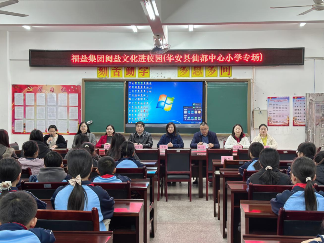 福盐集团“闽盐”文化进校园活动(华安县仙都中心小学专场)开幕 近日,福盐集团携手厦门市滨海小学走进漳州市华安县仙都中心小学,以“蓝色市民家校社协同育人”课题为载体,共同开启了一场别开生面的“山海协作”教育实践。通过“校-企-家-社”四方联动,以盐为媒,将承载着海洋记忆与千年智慧的福建海盐文化送入校园,助力山区教育提质,以实际行动践行国企社会责任。 爱心传递 盐情入校 开幕仪式上,厦门盐业副总经理张姗在致辞中表示:“盐,是百味之首,生命之基。福建海盐不仅是源自洁净海域的生态海盐,更是一份融合海洋故事、匠人智慧与健康理念的文化礼物。”随后,“盐小宣”宣讲队员马小婧开展趣味宣讲,她以丰富的海盐知识搭配互动形式,为同学们讲解福建海盐依托阳光、海水与古法工艺自然结晶,留存天然海洋矿物质的独特优势,在欢声笑语中将海洋知识与健康用盐理念送入课堂、沁润童心。 盐小宣队员为同学们上盐知识趣味课 深入盐田 盐学入课 为深化活动实效,活动期间,滨海小学教师团队还实地探访海盐生产一线,亲身感受“七步走水”的传统技艺与现代匠心。与企业代表围绕《海水晒盐模拟实验》等课程展开深入研讨,致力于将鲜活的福建海盐文化资源转化为可融入日常教学的生动教案,真正实现文化资源向教育力量的转化。