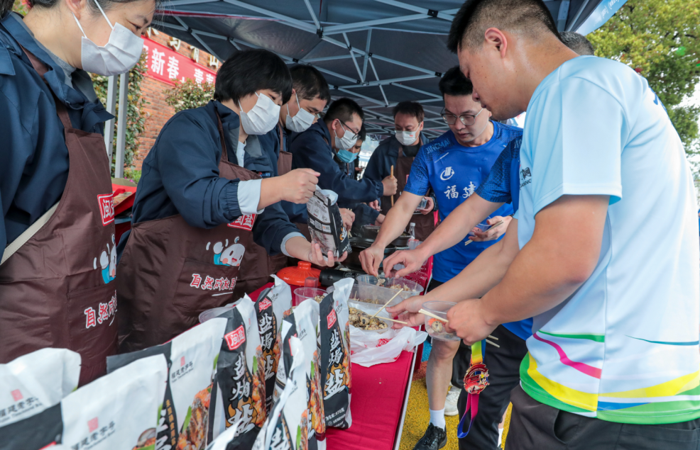 精准服务,创新品牌推广服务。在赛事如火如荼进行的同时,三明盐业在活动现场精心设置了专属宣传展位,重点开展“闽盐”品牌宣传和盐焗盐专场推广。工作人员热情接待每一位前来咨询的职工,用通俗易懂的语言介绍盐焗盐的特点。为增强体验感,现场同步架设厨具,现场制作盐焗鹌鹑蛋等特色美食,让大家在品尝美味的过程中直观了解产品,互动氛围热烈融洽。此外,工作人员还贴心准备了电解质固体饮料,为完赛选手及时补充能量,用细致的服务获得了大家的一致认可。